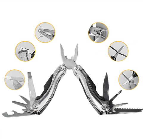 Profesyonel 13in1 paslanmaz çelik çok aracı pense açık Survival yürüyüş için-cep boyutu tırtıklı içerir şişe açacağı